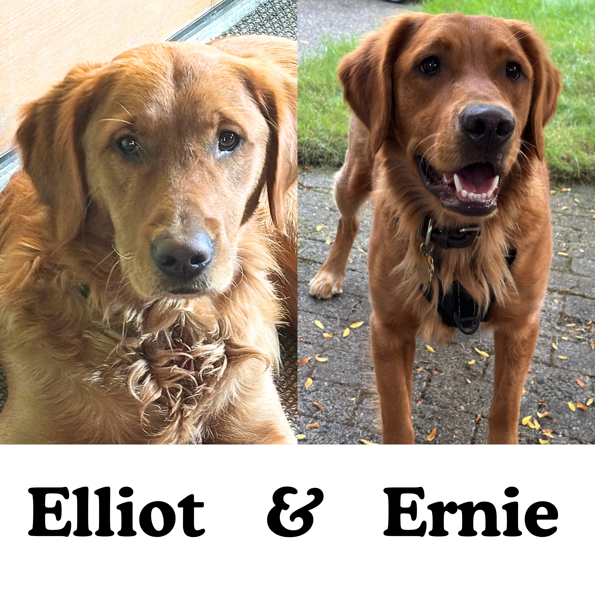 Snuggly, sweet, handsome, lovers of fetch and “snappys” (snap peas), our beloved therapy dogs dare to love people in their own way. Elliot loves to hold your hand and look fondly into your eyes. Ernie is full of kisses. Together, these brothers brighten everyone’s day.